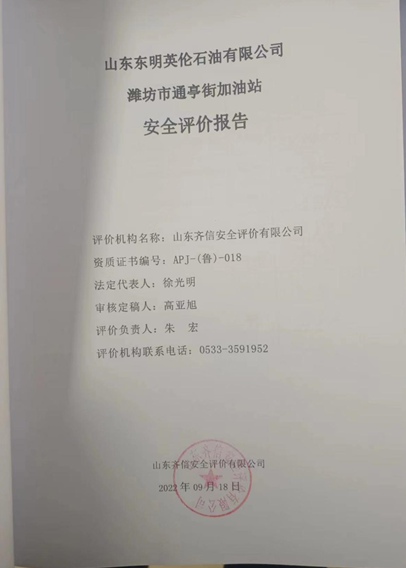 山東東明英倫石油有限公司濰坊市通亭街加油站位于山東省濰坊市寒亭區(qū)通亭街59號。該站原名為中油山東濰坊銷售分公司第三十三加油站,后由山東東明英倫石油有限公司租賃,成立于2020年02月14日,取得濰坊市寒亭區(qū)行政審批服務局頒發(fā)的營業(yè)執(zhí)照。該加油站主要從事汽油和柴油的經(jīng)營,經(jīng)營方式為零售,法定代表人為李開寬。類型為有限責任公司分公司(非自然人投資或控股的法人獨資)。 該加油站現(xiàn)有埋地油罐5臺,汽油雙層罐3臺,單罐容積30m3,柴油雙層罐1臺,單罐容積為30m3,最南側(cè)1臺儲罐停用,柴油折半計入,該加油站油罐總?cè)莘e為105m3,根據(jù)《汽車加油加氣加氫站技術標準》(GB50156-2021)第3.0.9條之規(guī)定,為二級加油站。 該加油站由于企業(yè)法定代表人更換,于2022年06月10日更換危險化學品經(jīng)營許可證(證書編號:魯濰?;?jīng)[2020]003004號),有效期至2023年1月20日;于2022年07月21日取得了濰坊市商務局下發(fā)的成品油零售經(jīng)營批準證書(證書編號:魯油零售證書第3707103047),有效期至2027年07月21日。 該加油站現(xiàn)有職工7人,其中專職安全管理人員1人,主要負責人和安全員已通過安全生產(chǎn)知識和管理能力考核合格,并取證。 依據(jù)《中華人民共和國安全生產(chǎn)法》(中華人民共和國主席令[2002]第70號,根據(jù)2021年6月10日中華人民共和國第十三屆全國人民代表大會常務委員會第二十九次會議《全國人民代表大會常務委員會關于修改〈中華人民共和國安全生產(chǎn)法〉的決定》修正)、《危險化學品安全管理條例》(國務院令第591號,根據(jù)國務院令第645號修訂)、《危險化學品經(jīng)營許可證管理辦法》(國家安全生產(chǎn)監(jiān)督管理總局令第55號,根據(jù)安監(jiān)總局令第79號修訂)的要求,危險化學品經(jīng)營許可證換發(fā)需進行安全評價,因此,山東東明英倫石油有限公司濰坊市通亭街加油站委托山東齊信安全評價有限公司進行經(jīng)營危險化學品安全評價。 接受委托后,山東齊信安全評價有限公司成立評價組,在進行資料與標準收集、現(xiàn)場調(diào)研、項目資料分析、危險與有害因素分析的基礎上,依據(jù)《安全評價通則》(AQ8001-2007)、《山東省加油站安全評價導則》(魯安監(jiān)發(fā)〔2006〕114號),通過對該加油站安全管理、站址選擇及總平面布置、加油工藝及設施、其他設施等方面的審查,選擇相應的評價方法對其危險、有害因素進行辨識和評價,編寫完成了《山東東明英倫石油有限公司濰坊市通亭街加油站安全評價報告》。 |