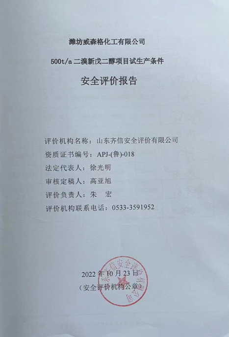 濰坊威森格化工有限公司成立于2009年1月9日,注冊(cè)資本1880萬元,2021年12月31日公司法定代表人由劉書忠變更為了應(yīng)小敏,2022年3月28日經(jīng)營(yíng)范圍進(jìn)行了變更,并取得了新的營(yíng)業(yè)執(zhí)照。變更后的經(jīng)營(yíng)范圍:許可項(xiàng)目:危險(xiǎn)化學(xué)品生產(chǎn);危險(xiǎn)化學(xué)品經(jīng)營(yíng)。一般項(xiàng)目:五金產(chǎn)品批發(fā);五金產(chǎn)品零售;建筑裝飾材料銷售。 該公司現(xiàn)有500t/a氫溴酸、1500t/a溴化氫乙酸溶液裝置各一套,原有的1000t/a氯化氫、500t/a溴化氫裝置、100t/a鹽酸生產(chǎn)裝置已經(jīng)閑置,2022年2月26日公司任命劉輝這主要負(fù)責(zé)人,2022年5月1日換取得了變更后的安全生產(chǎn)許可證,編號(hào):(魯)WH安許證字[2022]070333號(hào),有效期至2025年5月4日,許可范圍:氫溴酸500t/a、溴化氫乙酸溶液1500t/a。 該公司于2019年8月16日取得了昌邑市應(yīng)急管理局核發(fā)的安全生產(chǎn)標(biāo)準(zhǔn)化三級(jí)企業(yè)(危險(xiǎn)化學(xué)品)證書,證書編號(hào):魯AQBWHⅢ201900005,有效期至2022年8月15日。 該公司現(xiàn)有職工21人,設(shè)置了安全管理機(jī)構(gòu)安全部,配備了2名專職安全管理人員,企業(yè)主要負(fù)責(zé)人應(yīng)小敏和安全生產(chǎn)管理人員張松濤(化工類注冊(cè)安全工程師)已經(jīng)取得安全管理人員考核合格證書。 廠區(qū)現(xiàn)在已建有一套年產(chǎn)500t/a二溴新戊二醇生產(chǎn)裝置,目前準(zhǔn)備進(jìn)行試生產(chǎn)。 |