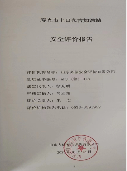 壽光市上口永吉加油站成立于2005年11月2日,注冊地位于壽光市上口鎮(zhèn)東堤村,投資人為李茂田。經(jīng)營范圍包括零售:汽油[-18℃≤閃點(diǎn)<23℃]、柴油、潤滑油(有效期限以許可證為準(zhǔn))(依法須經(jīng)批準(zhǔn)的項(xiàng)目,經(jīng)相關(guān)部門批準(zhǔn)后方可開展經(jīng)營活動(dòng))。 該加油站現(xiàn)有3臺儲(chǔ)罐,其中汽油罐2臺,柴油罐1臺,單罐容積均為15m3,柴油折半計(jì)入,該站儲(chǔ)罐總?cè)莘e為37.5m3,根據(jù)《汽車加油加氣加氫站技術(shù)標(biāo)準(zhǔn)》(GB50156-2021)第3.0.9條之規(guī)定,為三級加油站。 該加油站已取得成品油零售經(jīng)營批準(zhǔn)證書,證書編號為:魯油零售證書第3707123037號,證書有效期為2020年12月25日至2025年12月25日。2020年4月13日取得了危險(xiǎn)化學(xué)品經(jīng)營許可證,證書編號為:魯濰?;?jīng)[2020]005013號,有效期2020年04月14日至2023年04月13日。該站經(jīng)營期間未發(fā)生安全事故。 該加油站現(xiàn)有職工5人,其中站長1人,安全員1人,站長、安全員均已通過安全生產(chǎn)知識和管理能力考核合格,并已取證。 依據(jù)《中華人民共和國安全生產(chǎn)法》(中華人民共和國主席令[2002]第70號,根據(jù)2021年6月10日中華人民共和國第十三屆全國人民代表大會(huì)常務(wù)委員會(huì)第二十九次會(huì)議《全國人民代表大會(huì)常務(wù)委員會(huì)關(guān)于修改〈中華人民共和國安全生產(chǎn)法〉的決定》修正)、《危險(xiǎn)化學(xué)品安全管理?xiàng)l例》(國務(wù)院令第591號,根據(jù)國務(wù)院令第645號修訂)、《危險(xiǎn)化學(xué)品經(jīng)營許可證管理辦法》(國家安全生產(chǎn)監(jiān)督管理總局令第55號,根據(jù)安監(jiān)總局令第79號修訂)的要求,危險(xiǎn)化學(xué)品經(jīng)營許可證換發(fā)需進(jìn)行安全評價(jià),因此,壽光市上口永吉加油站委托山東齊信安全評價(jià)有限公司進(jìn)行經(jīng)營危險(xiǎn)化學(xué)品安全評價(jià)。 接受委托后,山東齊信安全評價(jià)有限公司成立評價(jià)組,在進(jìn)行資料與標(biāo)準(zhǔn)收集、現(xiàn)場調(diào)研、項(xiàng)目資料分析、危險(xiǎn)與有害因素分析的基礎(chǔ)上,依據(jù)《安全評價(jià)通則》(AQ8001-2007)、《山東省加油站安全評價(jià)導(dǎo)則》(魯安監(jiān)發(fā)〔2006〕114號),通過對該加油站安全管理、站址選擇及總平面布置、加油工藝及設(shè)施、其他設(shè)施等方面的審查,選擇相應(yīng)的評價(jià)方法對其危險(xiǎn)、有害因素進(jìn)行辨識和評價(jià),編寫完成了《壽光市上口永吉加油站安全評價(jià)報(bào)告》。 |