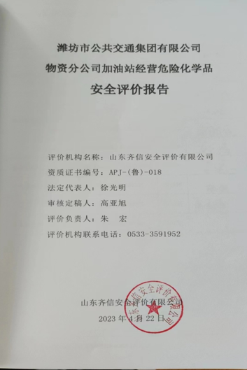 濰坊市公共交通集團有限公司物資分公司加油站位于濰坊市濰城區(qū)東風西街669號,法定代表人為任勇,類型為有限責任公司分公司(國有獨資)。該加油站成立于1991年3月8日,取得濰坊市濰城區(qū)行政審批服務(wù)局頒發(fā)的營業(yè)執(zhí)照。經(jīng)營范圍:帶有儲存設(shè)施的經(jīng)營,汽油、柴油(有效期限以許可證為準);銷售:汽車配件。(依法須經(jīng)批準的項目,經(jīng)相關(guān)部門批準后方可開展經(jīng)營活動)。 該加油站已取得成品油零售經(jīng)營批準證書,證書編號:魯油零售證書第3707023007號,證書有效期為2021年2月22日至2026年2月22日。2020年8月19日取得了危險化學品經(jīng)營許可證,證書編號:魯濰?;?jīng)[2020]002037號,有效期為2020年8月19日至2023年8月18日。該加油站經(jīng)營期間未發(fā)生安全事故。 該加油站現(xiàn)有埋地油罐4個,儲罐均為埋地雙層SF臥式儲罐,單罐容積均為30m3,其中汽油罐2個,柴油罐2個,柴油折半計入,該加油站油罐總?cè)莘e為90m3,根據(jù)《汽車加油加氣加氫站技術(shù)標準》(GB50156-2021)第3.0.9條之規(guī)定,為三級加油站。 該加油站現(xiàn)有職工7人,其中其中安全管理人員1人,技術(shù)管理人員1人,主要負責人、安全員已通過安全生產(chǎn)知識和管理能力考核合格,并取證,其他從業(yè)人員經(jīng)本單位培訓(xùn)考核合格。 依據(jù)《中華人民共和國安全生產(chǎn)法》(中華人民共和國主席令[2002]第70號,根據(jù)2021年6月10日中華人民共和國第十三屆全國人民代表大會常務(wù)委員會第二十九次會議《全國人民代表大會常務(wù)委員會關(guān)于修改〈中華人民共和國安全生產(chǎn)法〉的決定》修正)、《危險化學品安全管理條例》(國務(wù)院令第591號,根據(jù)國務(wù)院令第645號修訂)、《危險化學品經(jīng)營許可證管理辦法》(國家安全生產(chǎn)監(jiān)督管理總局令第55號,根據(jù)安監(jiān)總局令第79號修訂)的要求,危險化學品經(jīng)營許可證換發(fā)需進行安全評價,因此,濰坊市公共交通集團有限公司物資分公司加油站委托山東齊信安全評價有限公司進行經(jīng)營危險化學品安全評價。 接受委托后,山東齊信安全評價有限公司成立評價組,在進行資料與標準收集、現(xiàn)場調(diào)研、項目資料分析、危險與有害因素分析的基礎(chǔ)上,依據(jù)《安全評價通則》(AQ8001-2007)、《山東省加油站安全評價導(dǎo)則》(魯安監(jiān)發(fā)〔2006〕114號),通過對該加油站安全管理、站址選擇及總平面布置、加油工藝及設(shè)施、其他設(shè)施等方面的審查,選擇相應(yīng)的評價方法對其危險、有害因素進行辨識和評價,編寫完成了《濰坊市公共交通集團有限公司物資分公司加油站安全評價報告》。 |