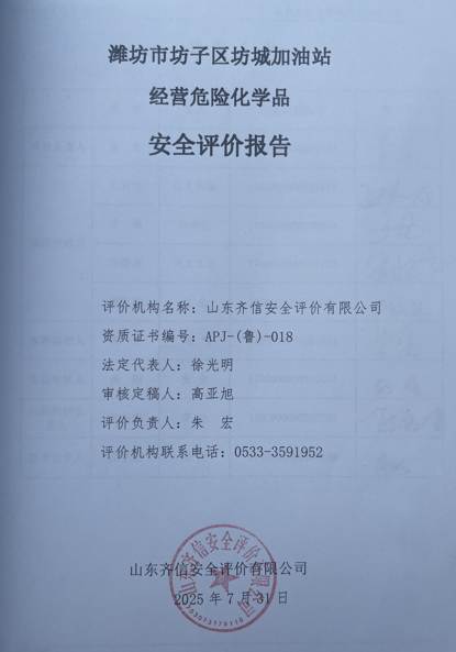濰坊市坊子區(qū)坊城加油站成立于2004年11月12日,注冊地位于濰坊市坊子區(qū)工礦街北首,投資人尚金帥。經(jīng)營范圍包括零售:零售:汽油、柴油(有效期限以許可證為準)、潤滑油;食品銷售。(依法須經(jīng)批準的項目,經(jīng)相關(guān)部門批準后方可開展經(jīng)營活動)。 該加油站現(xiàn)有4臺儲罐,其中汽油罐3臺,柴油罐1臺 ,具體為92#汽油雙層罐2個,容積均為25m3,95#汽油雙層罐1個,容積25m3,柴油雙層罐1個,容積25m3,柴油罐隨季節(jié)調(diào)整品種。柴油折半計入,該站儲罐總?cè)莘e為87.5m3,根據(jù)《汽車加油加氣加氫站技術(shù)標準》(GB50156-2021)第3.0.9條之規(guī)定,為三級加油站。 該加油站于2022年8月19日換發(fā)了危險化學品經(jīng)營許可證,證書編號為:魯濰?;?jīng)[2022] 004015號,有效期至2025年8月18日;于2025年5月7日換發(fā)了成品油零售經(jīng)營許可證(證書編號:魯油零售證書第3707043016號),有效期至2030年5月7日。 依據(jù)《中華人民共和國安全生產(chǎn)法》(中華人民共和國主席令[2002]第70號,根據(jù)2021年6月10日中華人民共和國第十三屆全國人民代表大會常務(wù)委員會第二十九次會議《全國人民代表大會常務(wù)委員會關(guān)于修改〈中華人民共和國安全生產(chǎn)法〉的決定》修正)、《危險化學品安全管理條例》(國務(wù)院令第591號,根據(jù)國務(wù)院令第645號修訂)、《危險化學品經(jīng)營許可證管理辦法》(國家安全生產(chǎn)監(jiān)督管理總局令第55號,根據(jù)安監(jiān)總局令第79號修訂)、《山東省應(yīng)急管理廳關(guān)于印發(fā)《山東省危險化學品經(jīng)營許可證實施細則》的通知》(魯應(yīng)急發(fā)〔2025〕4號)的要求,危險化學品經(jīng)營許可證換發(fā)需進行安全評價,因此,濰坊市坊子區(qū)坊城加油站委托山東齊信安全評價有限公司進行經(jīng)營危險化學品安全評價。 接受委托后,山東齊信安全評價有限公司成立評價組,在進行資料與標準收集、現(xiàn)場調(diào)研、項目資料分析、危險與有害因素分析的基礎(chǔ)上,依據(jù)《安全評價通則》(AQ8001-2007)、《山東省加油站安全評價導則》(魯安監(jiān)發(fā)〔2006〕114號),通過對該加油站安全管理、站址選擇及總平面布置、加油工藝及設(shè)施、其他設(shè)施等方面的審查,選擇相應(yīng)的評價方法對其危險、有害因素進行辨識和評價,編寫完成了《濰坊市坊子區(qū)坊城加油站安全評價報告》。 |
