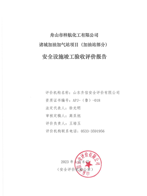 舟山市梓航化工有限公司諸城加油站成立于2023年1月4日,2023年1月4日取得諸城市行政審批服務(wù)局核發(fā)的營業(yè)執(zhí)照,類型為其他有限責任公司分公司,負責人林松峰,經(jīng)營場所為山東省濰坊市諸城市舜王街道舜王大道(G206)與青蘭高速交叉口東北角。 該項目于2021年9月29日取得了濰坊市商務(wù)局出具的《關(guān)于舟山市梓航化工有限公司諸城加油站等企業(yè)申請成品油零售網(wǎng)店規(guī)劃確認的批復(fù)》(濰商務(wù)字[2021]70號),同意舟山市梓航化工有限公司諸城加油站新建網(wǎng)點規(guī)劃。 該站主要經(jīng)營汽油、柴油等成品油,經(jīng)營方式為零售。舟山市梓航化工有限公司諸城加油加氣站項目總投資3000萬元,加油站項目投資2000萬元,其中安全設(shè)施投入約30萬元。加油站部分建設(shè)內(nèi)容包括罩棚、站房、加油機、埋地儲油罐及其配套設(shè)施。 該項目(加油站部分)于2022年9月15日開工建設(shè),2022年12月25日竣工。按照《中華人民共和國安全生產(chǎn)法》、《危險化學品建設(shè)項目安全監(jiān)督管理辦法》等法律、法規(guī)、文件的規(guī)定要求,該加油站委托我公司對其加油站建設(shè)項目進行安全設(shè)施竣工驗收評價工作。 舟山市梓航化工有限公司諸城加油加氣站項目占地面積約3385m2,其中站房建筑面積300m2,加油機罩棚占地面積800m2。該站包括1座營業(yè)站房,為二層建筑,由辦公室、營業(yè)室、配電室、值班室、無明火廚房、衛(wèi)生間等構(gòu)成。設(shè)加油機4臺(六槍汽油加油機2臺,四槍柴油加油機2臺),加油槍共20支,設(shè)埋地承重罐區(qū)1處(30m3埋地汽油罐2臺,30m3埋地柴油罐3臺),加油站儲罐總?cè)莘e為105m3(柴油折半計),該加油站采用潛油泵加油工藝。 |