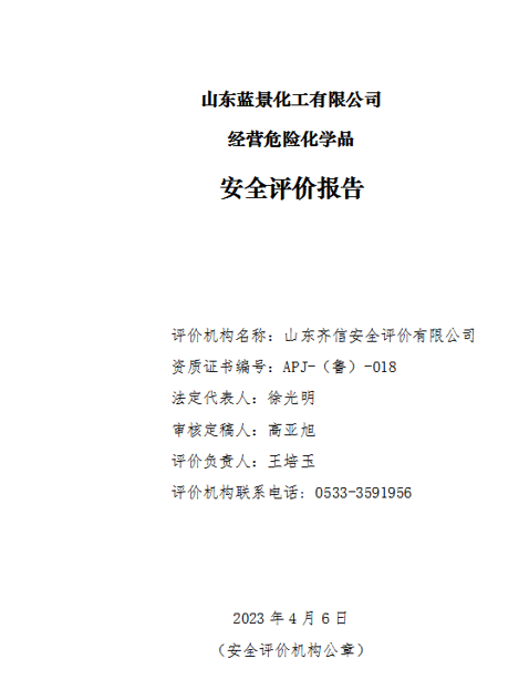山東藍(lán)景化工有限公司原名為安丘市宏泰經(jīng)貿(mào)有限公司,安丘市宏泰經(jīng)貿(mào)有限公司成立于 2007 年 1 月 15 日,注冊地址為安丘市景芝鎮(zhèn)匯泉路南首,公司原法定代表人為葛永明。安丘市宏泰經(jīng)貿(mào)有限公司于2017年7月變更為山東藍(lán)景化工有限公司,2018年4月28日取得安丘市市場監(jiān)督管理局核發(fā)的新營業(yè)執(zhí)照,法定代表為李桂秀。該公司是一家危險(xiǎn)化學(xué)品經(jīng)營企業(yè)。公司現(xiàn)有職工5人,專職安全管理人員1人。 該公司現(xiàn)有11臺(tái)立式鹽酸儲(chǔ)罐(6 臺(tái) 150m3鹽酸儲(chǔ)罐,5 臺(tái) 110m3鹽酸儲(chǔ)罐);1臺(tái)10m3臥式次氯酸鈉溶液儲(chǔ)罐,1 臺(tái) 10m3臥式硫酸儲(chǔ)罐,1臺(tái)10m3臥式氫氧化鈉溶液儲(chǔ)罐。該公司于2020年6月19 日取得了危險(xiǎn)化學(xué)品經(jīng)營許可證,編號(hào):魯濰危化經(jīng)[2020]008020 號(hào),有效期至 2023年7月5日。經(jīng)營范圍:有儲(chǔ)存設(shè)施的經(jīng)營:鹽酸、硫酸、氫氧化鈉溶液、次氯酸鈉溶液;不帶有儲(chǔ)存設(shè)施的經(jīng)營:丙酮、醋酸酐、高錳酸鉀、甲苯、甲基乙基酮、哌啶、三氯甲烷、乙醚、1,1-二氯乙烷、1,2-二甲苯、1,2-二氯丙烷、1,2-二氯乙烷、1,4-二甲苯、2,2-二甲氧基丙烷、2,4-戊二酮、2-丙醇、2- 甲基-2-丙醇、2-氯丙烯、4-氯甲苯、N,N-二甲基甲酰胺、苯、苯甲醚、苯乙烯、丙酰氯、二甲苯異構(gòu)體混合物、二聚環(huán)戊二烯、二硫化碳、環(huán)己酮、環(huán)己烷、環(huán)氧樹脂、甲醇、甲基叔丁基醚、硫代異氰酸甲酯、三乙胺、石油醚、四氫呋喃、松節(jié)油、亞硝酸異戊酯、乙醇、乙醇溶液、乙二醇乙醚、乙腈、乙醛、乙酸乙烯酯、乙酸乙酯、異丁酸、異丁烯酸甲酯、正丁醇、正庚烷、正硅酸乙酯、正癸烷、正己烷、1,2-苯二胺、1,3-苯二胺、1,4-苯二胺、1,4-苯二酚、1-萘胺、2-氨基吡啶、2-丁氧基乙醇、2-甲基苯胺、2-羥基苯甲醛、2-硝基苯胺、4-甲基苯胺、4-甲氧基苯胺、4-溴苯胺、苯胺、苯酚、苯甲酸甲酯、苯肼、對(duì)甲苯磺酰氯、二氯甲烷、氟化鉀、酒石酸銻鉀、硫脲、氯化鋇、偏釩酸銨、三氯乙烯、四氯化碳、硝酸亞汞、乙酸鉛、1,2-乙二胺、1,6-己二胺、2-氨基乙醇、氨基磺酸、氨溶液、苯甲酰氯、丙酸、丙烯酸、丁酸、多聚磷酸、氟硼酸、汞、甲醛溶液、甲酸、鄰苯二甲酸酐、硫化鈉、硫酸氫鉀、氯化亞砜、氯甲酸芐酯、氫氟酸、氫溴酸、氫氧化鉀溶液、氫氧化鈉、三氟乙酸、三氯化鋁、三氯化鐵、水合肼、五氧化(二)磷、亞硫酸氫鈉、乙酸、乙酸溶液、正磷酸、亞氯酸鈉溶液、2,2'-偶氮二異丁腈、甲醇鈉、金屬鉀、金屬鈉、連二亞硫酸鈉、硫磺、硫氫化鈉、鎂粉、萘、鋅粉、4,6-二硝基-2-氨基苯酚鈉、氮、二氧化硫、二氧化碳、一甲銨、乙烷、碘酸鉀、高碘酸鈉、高錳酸鈉、過氧化(二)苯甲酰、過氧化二叔丁基、過氧化二異丙苯、過氧化氫、過氧化氫叔丁基 、過氧化氫異丙苯、過乙酸、三氧化鉻、硝酸胍、硝酸錳、溴酸鉀、亞硝酸鈉、重鉻酸鉀、亞氯酸鈉、氯酸鈉、氯酸鈉溶液。銷售:化工產(chǎn)品(不含危險(xiǎn)化學(xué)品)、食品添加劑、環(huán)境保護(hù)專用設(shè)備、玻璃鋼制品、職業(yè)清新服務(wù)、建筑物內(nèi)清潔服務(wù)、貨物運(yùn)輸代理、裝卸搬運(yùn)、倉儲(chǔ)服務(wù)、信息技術(shù)咨詢服務(wù)。 |