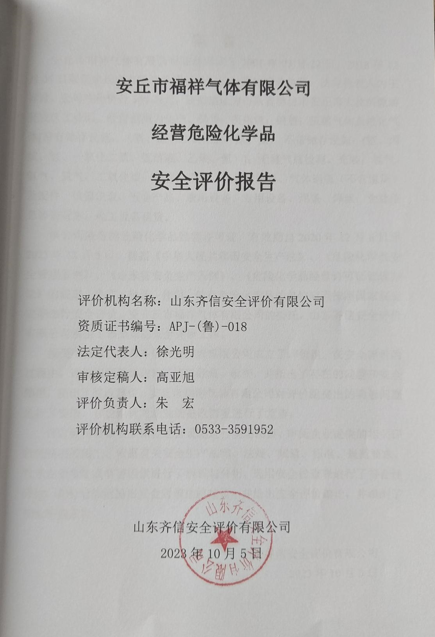 安丘市福祥氣體有限公司注冊成立于2001年03月22日,2018年12月06日取得安丘市市場監(jiān)督管理局核發(fā)的新的營業(yè)執(zhí)照,法定代表人為王祥政。公司注冊資金300萬元,注冊地址為山東省濰坊市安丘市大汶河旅游開發(fā)區(qū)工業(yè)園。經(jīng)營范圍為生產(chǎn)、銷售:醫(yī)用氧;銷售:壓縮氣體及液化氣體[帶有儲存設(shè)施:(氧、氬、二氧化碳、氮、氦);不帶儲存設(shè)施:(氨、丙烷、氫、一氧化二氮、氨溶液、乙炔、氦)];無縫氣瓶檢測。充裝;氧氣、氬氣、氮氣、二氧化碳;銷售:空氣、氣體減壓器、氣體鋼瓶(不含醫(yī)用)及配件、儀器儀表、五金產(chǎn)品、通用設(shè)備、專用設(shè)備、焊條、焊絲;企業(yè)信息咨詢服務(wù);化工設(shè)備租賃。 該公司持有的危險化學(xué)品經(jīng)營許可證,有效期自2020年12月6日至2023年12月5日。根據(jù)《中華人民共和國安全生產(chǎn)法》、《危險化學(xué)品安全管理條例》、《山東省安全生產(chǎn)條例》、《危險化學(xué)品經(jīng)營許可證管理辦法》的規(guī)定,生產(chǎn)、經(jīng)營、使用、儲存危險化學(xué)品的單位應(yīng)當(dāng)按照國家規(guī)定定期進(jìn)行安全評價。受安丘市福祥氣體有限公司的委托,山東齊信安全評價有限公司承擔(dān)了該企業(yè)的安全評價工作。 接受委托后,山東齊信安全評價有限公司成立了評價組。在安全評價的過程中,評價組到現(xiàn)場進(jìn)行了資料收集、檢查,并指出了存在的問題和安全隱患,提出了整改建議。安丘市福祥氣體有限公司對評價組提出的隱患問題進(jìn)行了整改,評價組針對企業(yè)的整改情況進(jìn)行了復(fù)查。 評價組在對該企業(yè)儲存經(jīng)營設(shè)施進(jìn)行現(xiàn)場勘察、審閱企業(yè)提供的相關(guān)評價資料的基礎(chǔ)上,依據(jù)有關(guān)安全生產(chǎn)法律、法規(guī)、規(guī)章、標(biāo)準(zhǔn)、規(guī)范要求,對該企業(yè)危險及有害因素進(jìn)行了辨識與分析,選用安全檢查表進(jìn)行了符合性評價,有針對性地提出安全對策措施建議,并給出安全評價結(jié)論,并編制了安全評價報告。 |