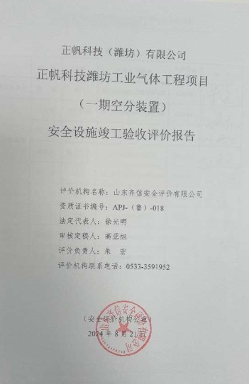 正帆科技(濰坊)有限公司成立于2021年06月03日,企業(yè)類型為有限責(zé)任公司(港澳臺(tái)投資、非獨(dú)資),注冊(cè)地位于濰坊濱海經(jīng)濟(jì)技術(shù)開發(fā)區(qū)大家洼街道黃海路以西、規(guī)劃支路以南,法定代表人為史可成,注冊(cè)資本2000萬美元,經(jīng)營范圍包括一般項(xiàng)目:工程和技術(shù)研究和試驗(yàn)發(fā)展;基礎(chǔ)化學(xué)原料制造(不含危險(xiǎn)化學(xué)品等許可類化學(xué)品的制造);特種設(shè)備出租;機(jī)械設(shè)備租賃;陸地管道運(yùn)輸;氣體、液體分離及純凈設(shè)備銷售;電子專用材料制造;電子專用材料銷售;儀器儀表銷售;半導(dǎo)體器件專用設(shè)備銷售;機(jī)械電氣設(shè)備銷售;光伏設(shè)備及元器件銷售;電子產(chǎn)品銷售;技術(shù)服務(wù)、技術(shù)開發(fā)、技術(shù)咨詢、技術(shù)交流、技術(shù)轉(zhuǎn)讓、技術(shù)推廣。(除依法須經(jīng)批準(zhǔn)的項(xiàng)目外,憑營業(yè)執(zhí)照依法自主開展經(jīng)營活動(dòng))許可項(xiàng)目:道路貨物運(yùn)輸(含危險(xiǎn)貨物);水路危險(xiǎn)貨物運(yùn)輸;移動(dòng)式壓力容器/氣瓶充裝;藥品批發(fā);藥品零售。(依法須經(jīng)批準(zhǔn)的項(xiàng)目,經(jīng)相關(guān)部門批準(zhǔn)后方可開展經(jīng)營活動(dòng),具體經(jīng)營項(xiàng)目以相關(guān)部門批準(zhǔn)文件或許可證件為準(zhǔn))。 為增加公司的業(yè)務(wù)輻射范圍,與公司現(xiàn)有產(chǎn)品產(chǎn)生協(xié)同效應(yīng),提高公司市場(chǎng)競(jìng)爭優(yōu)勢(shì),上海正帆科技股份有限公司計(jì)劃由全資子公司上海徠風(fēng)工業(yè)科技有限公司與香港正帆國際貿(mào)易有限公司共同出資新設(shè)全資孫公司正帆科技(濰坊)有限公司,在濰坊濱海經(jīng)濟(jì)技術(shù)開發(fā)區(qū)實(shí)施正帆科技濰坊工業(yè)氣體工程項(xiàng)目。該項(xiàng)目于2021年11月11日取得了山東省建設(shè)項(xiàng)目備案證明,項(xiàng)目代碼:2111-370700-04-01-532024。項(xiàng)目分二期建設(shè),一期為生產(chǎn)氧氮?dú)宓目諝夥蛛x裝置,二期工程為單氮空分及鋼瓶充裝生產(chǎn)線。 正帆科技(濰坊)有限公司正帆科技濰坊工業(yè)氣體工程項(xiàng)目(一期空分裝置)由山東應(yīng)急安全技術(shù)服務(wù)有限公司進(jìn)行了設(shè)立安全評(píng)價(jià),于2022年5月28日取得濰坊市應(yīng)急管理局出具的《危險(xiǎn)化學(xué)品建設(shè)項(xiàng)目安全審查意見書》,編號(hào):濰應(yīng)急?;?xiàng)目審字[2022]0042號(hào);由中冶華天南京工程技術(shù)有限公司進(jìn)行了安全設(shè)施設(shè)計(jì),于2022年11月26日取得濰坊市應(yīng)急管理局出具的《危險(xiǎn)化學(xué)品建設(shè)項(xiàng)目安全審查意見書》,編號(hào):濰應(yīng)急?;?xiàng)目審字[2022]0095號(hào)。項(xiàng)目施工單位為江蘇禾橋建設(shè)集團(tuán)有限公司,監(jiān)理單位為上海寶鋼工程咨詢有限公司。該項(xiàng)目于2023年2月開工建設(shè),于2023年12月建設(shè)完成。企業(yè)根據(jù)《山東省化工裝置安全試車工作規(guī)范》(DB37/T1854-2020)編制了《正帆科技濰坊工業(yè)氣體工程項(xiàng)目(一期空分裝置)試生產(chǎn)方案》,于2024年3月組織專家對(duì)試生產(chǎn)方案進(jìn)行了審查、對(duì)試生產(chǎn)條件進(jìn)行了確認(rèn),對(duì)專家提出的意見進(jìn)行了整改,于2024年4月由山東齊信安全評(píng)價(jià)有限公司出具了試生產(chǎn)條件安全評(píng)價(jià)報(bào)告,于2024年5月6日進(jìn)入試運(yùn)行階段,到目前為止,試運(yùn)行期間達(dá)產(chǎn)達(dá)標(biāo),無安全生產(chǎn)事故發(fā)生。 該項(xiàng)目產(chǎn)品氧[壓縮的]、氧[液化的]、氮[壓縮的]、氮[液化的]、氬[液化的]均為列入《危險(xiǎn)化學(xué)品目錄》(2015版,2022年修訂)的危險(xiǎn)化學(xué)品,故該項(xiàng)目屬于危險(xiǎn)化學(xué)品生產(chǎn)建設(shè)項(xiàng)目。 根據(jù)《中華人民共和國安全生產(chǎn)法》、《危險(xiǎn)化學(xué)品安全管理?xiàng)l例》、《山東省安全生產(chǎn)條例》、《危險(xiǎn)化學(xué)品建設(shè)項(xiàng)目安全監(jiān)督管理辦法》等法律法規(guī)要求,該項(xiàng)目建設(shè)完成后應(yīng)進(jìn)行安全設(shè)施竣工驗(yàn)收評(píng)價(jià)。 受正帆科技(濰坊)有限公司委托,山東齊信安全評(píng)價(jià)有限公司承擔(dān)了該公司正帆科技濰坊工業(yè)氣體工程項(xiàng)目(一期空分裝置)的安全設(shè)施竣工驗(yàn)收評(píng)價(jià)。雙方簽訂《安全評(píng)價(jià)技術(shù)服務(wù)合同》后,山東齊信安全評(píng)價(jià)有限公司確定項(xiàng)目負(fù)責(zé)人,成立評(píng)價(jià)項(xiàng)目組,根據(jù)國家有關(guān)安全生產(chǎn)法律法規(guī)、行政規(guī)章及標(biāo)準(zhǔn)規(guī)范要求,通過對(duì)企業(yè)提供的資料進(jìn)行分析和現(xiàn)場(chǎng)檢查,結(jié)合其生產(chǎn)的實(shí)際情況,運(yùn)用科學(xué)的評(píng)價(jià)方法進(jìn)行定性、定量分析,提出合理、可行的安全對(duì)策措施及建議,并按照《安全驗(yàn)收評(píng)價(jià)導(dǎo)則》(AQ8003-2007)、《危險(xiǎn)化學(xué)品建設(shè)項(xiàng)目安全評(píng)價(jià)細(xì)則(試行)》(安監(jiān)總危化[2007]255號(hào))和有關(guān)法規(guī)、技術(shù)標(biāo)準(zhǔn