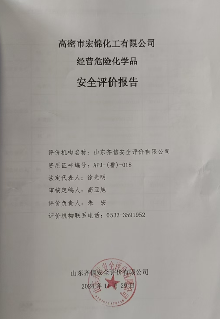 高密市宏錦化工有限公司成立于2005年03月25日,注冊地位于山東省濰坊市高密市醴泉街道醴泉工業(yè)園盛泉街1671號,法定代表人為韓洪波。經(jīng)營范圍包括銷售化工產(chǎn)品(其中危險化學品按《危險化學品經(jīng)營許可證》核定的方式和范圍經(jīng)營)、建筑材料、五金制品;經(jīng)營國家允許范圍內(nèi)的貨物進出口業(yè)務。(依法須經(jīng)批準的項目,經(jīng)相關部門批準后方可開展經(jīng)營活動)。 該公司于2021年12月16日換發(fā)了《危險化學品經(jīng)營許可證》,登記編號:魯濰(高密)危化經(jīng)[2021]090248號,有效期2022年01月10日至2025年01月09日。經(jīng)營方式帶有儲存設施的經(jīng)營,經(jīng)營范圍包含:有儲存的經(jīng)營:氫氧化鈉溶液[含量>30%];無儲存的經(jīng)營:鹽酸、硫酸、次氯酸鈉溶液[含有效氯>5%]。因主要負責人調(diào)整,2024年6月18日該公司重新?lián)Q發(fā)了《危險化學品經(jīng)營許可證》,有效期、經(jīng)營方式未發(fā)生變化。 為貫徹“安全第一,預防為主,綜合治理”的方針,確保已建項目在安全方面符合國家的有關法律、法規(guī)、標準和規(guī)定,根據(jù)《中華人民共和國安全生產(chǎn)法》、《危險化學品安全管理條例》等規(guī)定,根據(jù)《危險化學品安全管理條例》第二十二條“生產(chǎn)、儲存危險化學品的企業(yè),應當委托具備國家規(guī)定的資質(zhì)條件的機構,對本企業(yè)的安全生產(chǎn)條件每3年進行一次安全評價,提出安全評價報告”;《山東省<危險化學品經(jīng)營許可證管理辦法>實施細則》第十五條“經(jīng)營許可證有效期滿后繼續(xù)從事危險化學品經(jīng)營活動的,要在期滿3個月前,向發(fā)證機關提出經(jīng)營許可證的延期申請,并提交延期申請書及第十三條、第十四條規(guī)定的文件、資料”,受高密市宏錦化工有限公司委托,山東齊信安全評價有限公司承擔了高密市宏錦化工有限公司危險化學品儲存經(jīng)營項目的安全現(xiàn)狀評價工作。 評價組成員根據(jù)國家有關法律、法規(guī)、條例、標準和規(guī)范,并依據(jù)該公司提供的有關資料,在對儲存設施進行了實地考察、現(xiàn)場詢問、查閱資料和調(diào)研的基礎上,通過科學分析并采用安全檢查表進行評價,編制完成了該項目的安全評價報告。 |